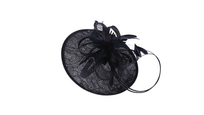 麻紗發(fā)飾_麻紗蕾絲印花紋時(shí)裝頭飾,羽毛桿裝飾花象牙白時(shí)尚頭箍宴會婚紗禮帽,帽子加工廠家。