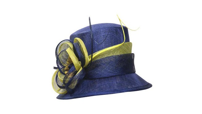 帽子整體采用比軟寧靜的秀場(chǎng)大熱的深蘭色,搭配明亮的黃色,大膽而不張揚(yáng),優(yōu)雅的貴族氣息。